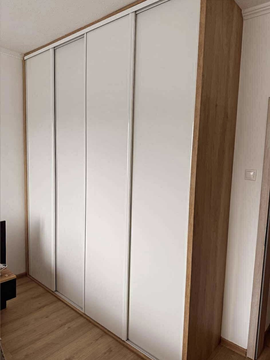 Vnútorné usporiadanie si navrhnete podľa vlastných potrieb – šatníkové tyče, police, zásuvky či organizéry na obuv. Posuvné dvere ušetria priestor a v kombinácii s modernými dekorami dodajú vášmu domovu elegantný vzhľad.